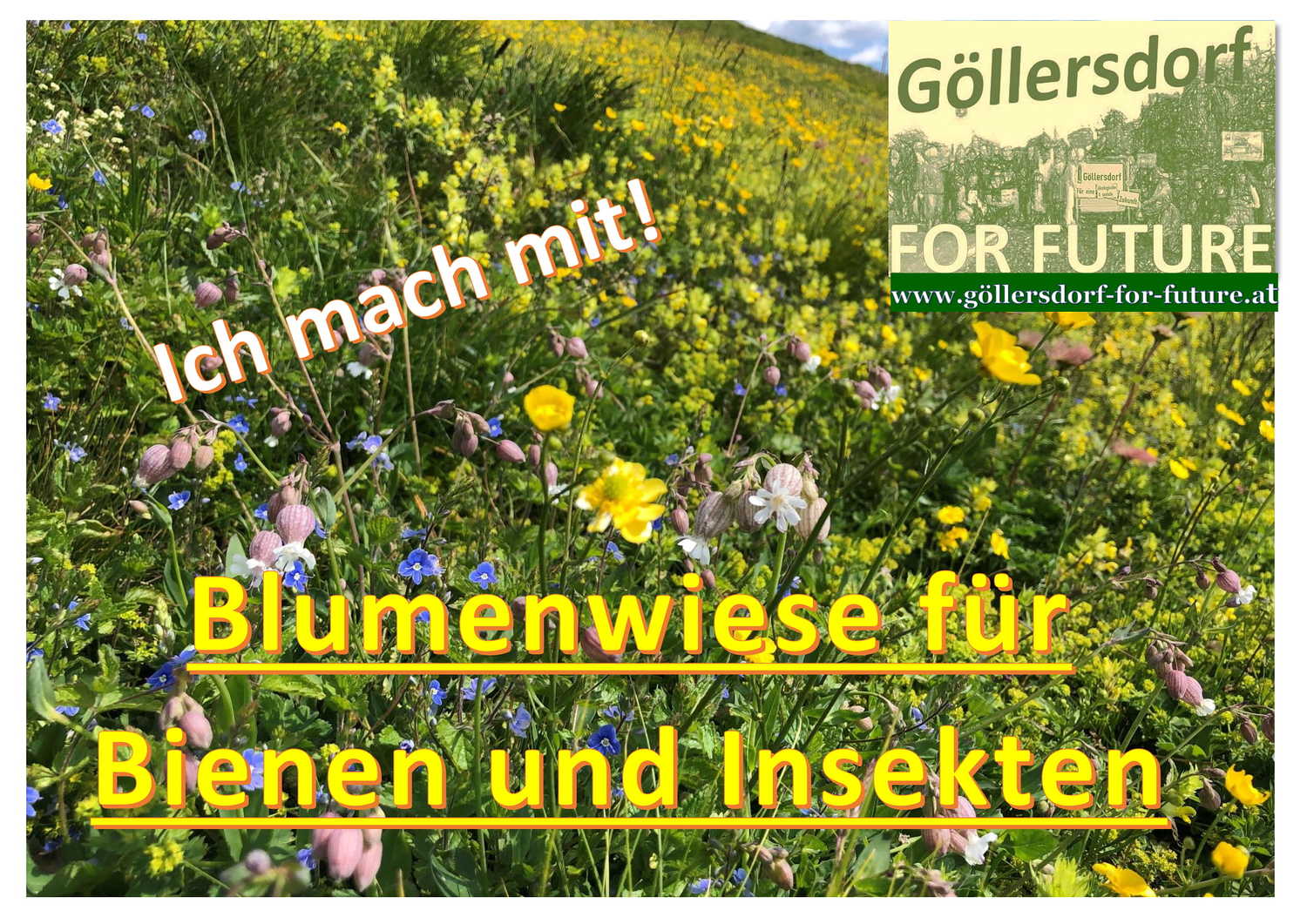 Als erste Initiative haben wir beschlossen, Insekten und Biodiversität zu fördern und Blühwiesen in den eigenen Gärten, vor dem eigenen Haus und auf öffentlichen Flächen anzulegen und andere Göllersdorferinnen und Göllersdorfer zu animieren, dabei mitzumachen.